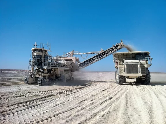 Wirtgen Surface Miner (Wirtgen Group) sind in der Lage, Gestein in einem Arbeitsgang zu schneiden, zu brechen und zu verladen.